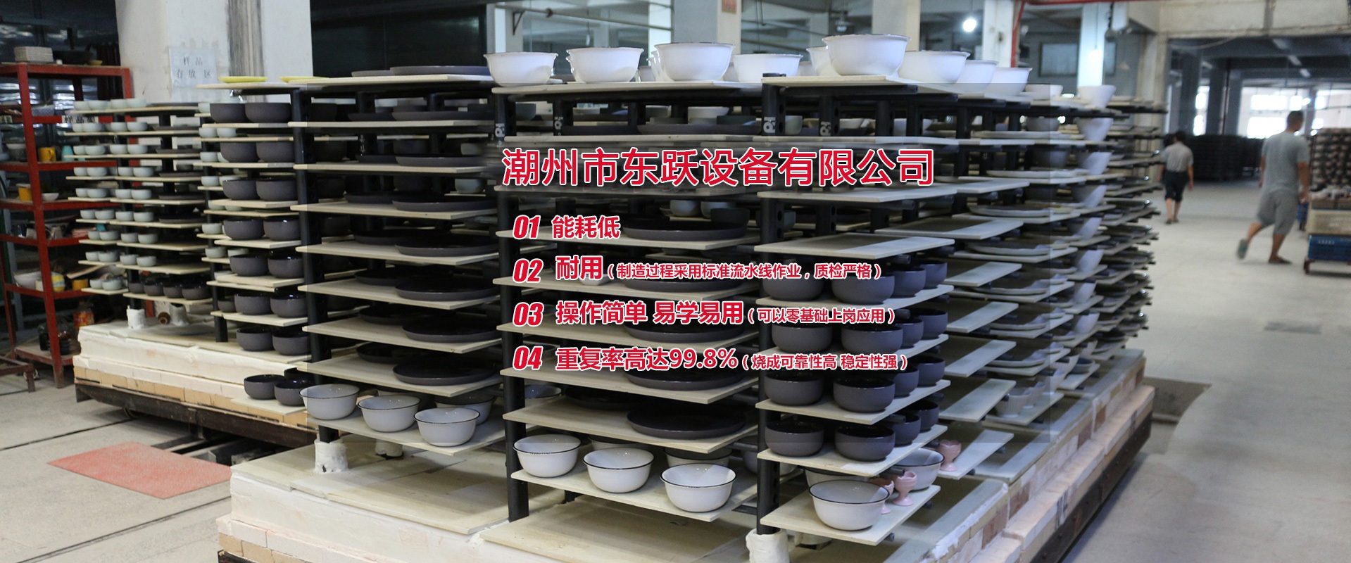 潮州市東躍設備有限公司,創(chuàng)立于公元2011年5月14日,經(jīng)過進十年的努力,已發(fā)展成一家擁有集研發(fā)、設計、加工制造、安裝、調(diào)試與售后一體化的窯爐公司。設計理念:1.能耗低2.耐用(制造過程采用標準流水線作業(yè),質(zhì)檢嚴格)3.操作簡單 易學易用(可以零基礎上崗應用)4.重復率高達99.8%(燒成可靠性高 穩(wěn)定性強)